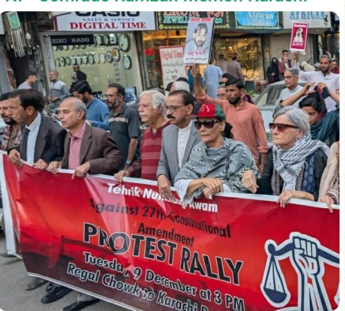 کراچی(رپورٹر) ستائیسویں آئینی ترمیم کے خلاف سول سوسائٹی کے عوام دوست، ترقی پسند باشعور قوم پرست اور جمہوریت پسندوں کی مشترکہ ریلی ریگل چوک سے پریس کلب کراچی تک نکالی گئی جس میں نیشنل پارٹی کے کامریڈ رمضان ، اصغر مزید پڑھیں
