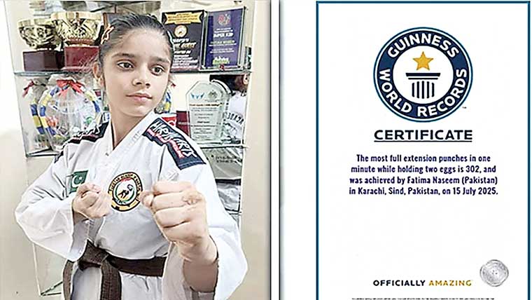 لاہور(سپورٹس ڈیسک )8 برس کی عمر میں اپنا نام گنیز ورلڈ ریکارڈ میں درج کروانے والی پاکستان کی مارشل آرٹسٹ فاطمہ نسیم نے ایک بار پھر عالمی ریکارڈ قائم کر لیا ہے۔ 12 سالہ فاطمہ نسیم نے اپنے ہاتھوں میں مزید پڑھیں