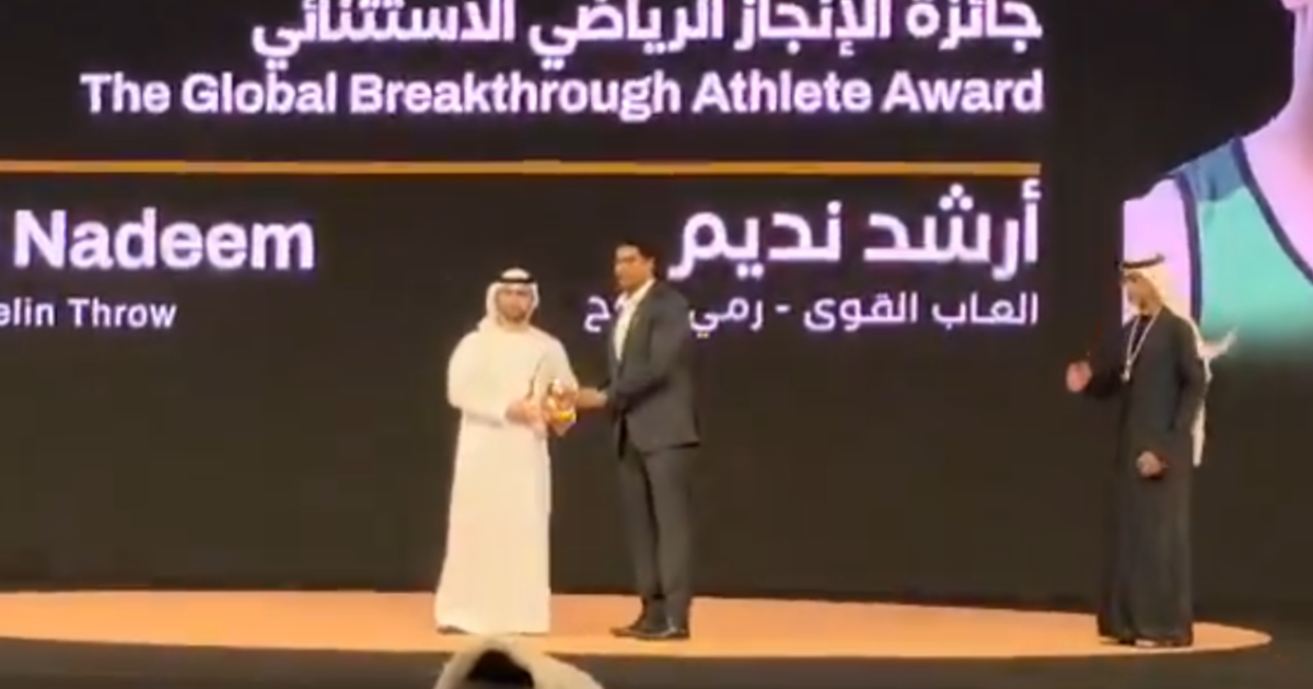 پاکستان کے اولمپک جیولن تھرو چیمپیئن ارشد ندیم کو دبئی میں منعقدہ ورلڈ سپورٹس سمٹ کے دوران شیخ محمد بن راشد آل مکتوم گلوبل سپورٹس ایوارڈ سے نوازا گیا۔ انہیں یہ اعزاز گلوبل بریک تھرو ایتھلیٹ کی کیٹیگری میں دیا مزید پڑھیں