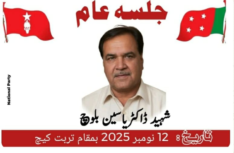 تربت (رپورٹر)شہید ڈاکٹر یاسین بلوچ کی 10 ویں برسی کے سلسلے میں جلسہ عام اج 12 نومبر، 2025 کو شام 3:30 بجےنیشنل پارٹی کے ریجنل سکریٹریٹ تربت میں منعقد ہوگی۔ تمام قائدیں اور کارکناں سے گزارش یے کہ وہ 3 مزید پڑھیں