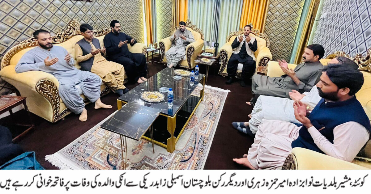 کوئٹہ (این این آئی) مشیر بلدیات نوابزادہ امیر حمزہ خان زہری نے ایم پی اے ہاسٹل کوئٹہ میں بدھ کو جمعیت علماء اسلام کے مرکزی رہنما و رکن بلوچستان اسمبلی ایم پی اے واشک زابد ریکی سے ان کی والدہ مزید پڑھیں
