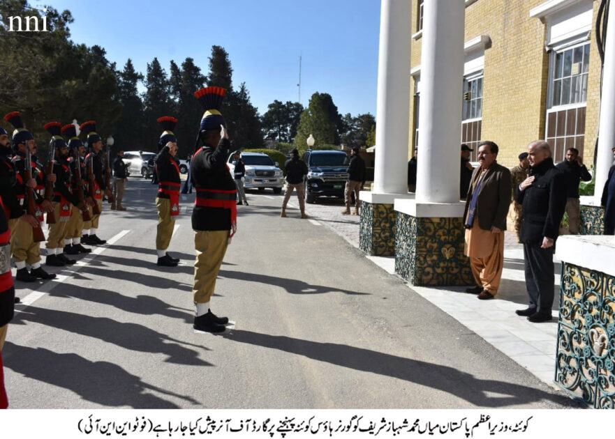 کوئٹہ (این این آئی)وزیراعظم محمد شہباز شریف کو گورنر ہاؤس آمد پر گارڈ آف آنر پیش کیا گیا،گورنر بلوچستان جعفر خان مندوخیل نے استقبال کیا۔جمعرات کو وزیراعظم آفس کے میڈیا ونگ سے جاری بیان کے مطابق گورنر ہاؤس میں وزیراعظم مزید پڑھیں