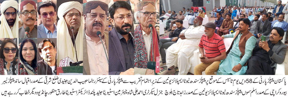 کراچی (اسٹاف رپورٹر)پاکستان پیپلز پارٹی کے 58ویں یومِ تاسیس کے موقع پر پیپلز سندھ ٹیوٹا ایمپلائز یونین کے زیرِ اہتمام ایک عظیم الشان اور پروقار تقریب کا انعقاد کیا گیا۔ تقریب کی میزبانی یونین کے صدر زاہد تاج بلوچ اور مزید پڑھیں