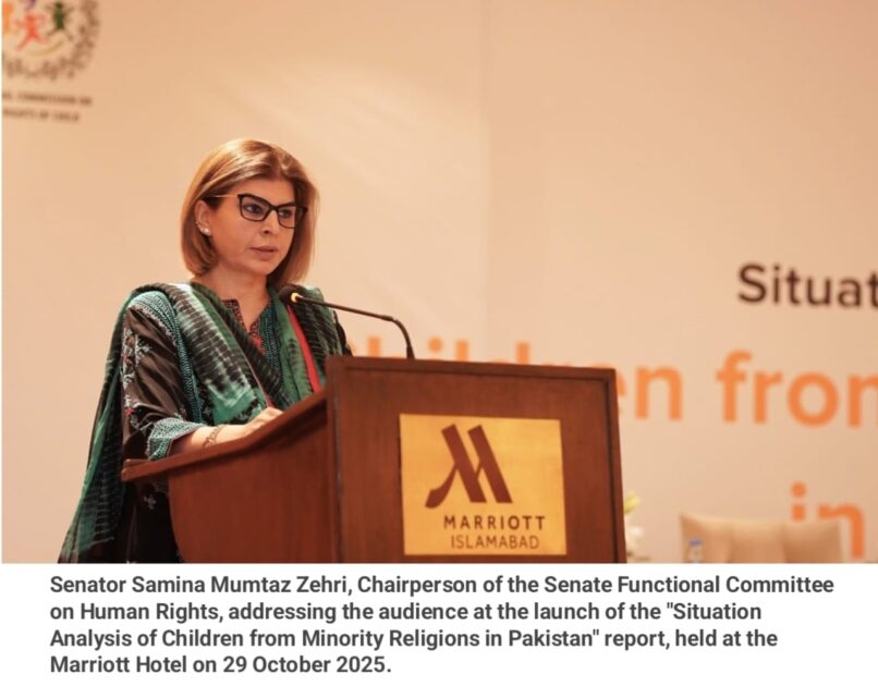 اسلام آباد( رپورٹر) سینیٹ کی قائمہ کمیٹی برائے انسانی حقوق کی چیئرپرسن سینیٹر ثمینہ ممتاز زہری نے نیشنل کمیشن آن دی رائٹس آف چائلڈ (NCRC) کے زیرِ اہتمام ”پاکستان میں اقلیتی مذاہب سے تعلق رکھنے والے بچوں کی صورتِ حال“ مزید پڑھیں