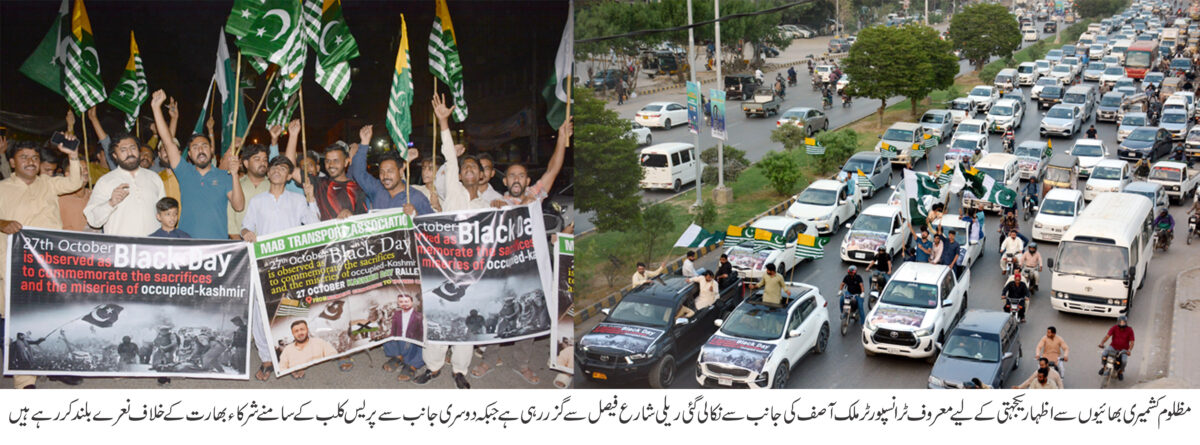 کراچی (اسٹاف رپورٹر)27اکتوبر کا دن ملک بھر میں یوم سیاہ کے طور پر منایا گیا اسی مناسبت سے معروف ٹرانسپورٹر ملک آصف کی جانب سے کشمیری مظلوم بھائیوں سے اظہار یکجہتی کے ایک ریلی کا انعقاد کیا ریلی کا آغاز مزید پڑھیں