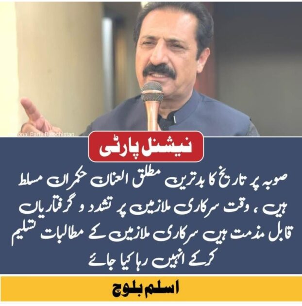 تربت (رپورٹر ) نیشنل پارٹی کے سابق مرکزی نائب صدر انجنیئر حمید بلوچ نے بلوچستان میں وکلاء اور انسانی حقوق کے کارکنوں کو ہراساں کرنے کی شدید مذمت کرتے ہوئے کہا ہے کہ یہ طرزِ عمل کسی بھی مہذب اور مزید پڑھیں