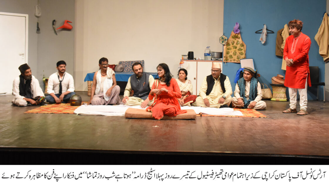 کراچی (رپورٹر ) آرٹس کونسل آف پاکستان کراچی کی جانب سے جاری ”عوامی تھیٹر فیسٹیول 2026“ کے تیسرے روز دو اسٹیج ڈراموں ”ہوتا ہے شب و روز تماشا“ اور مزاح سے بھرپور ”اُلٹا شُلٹا“ نے شائقین کو خوب محظوظ کیا۔ مزید پڑھیں