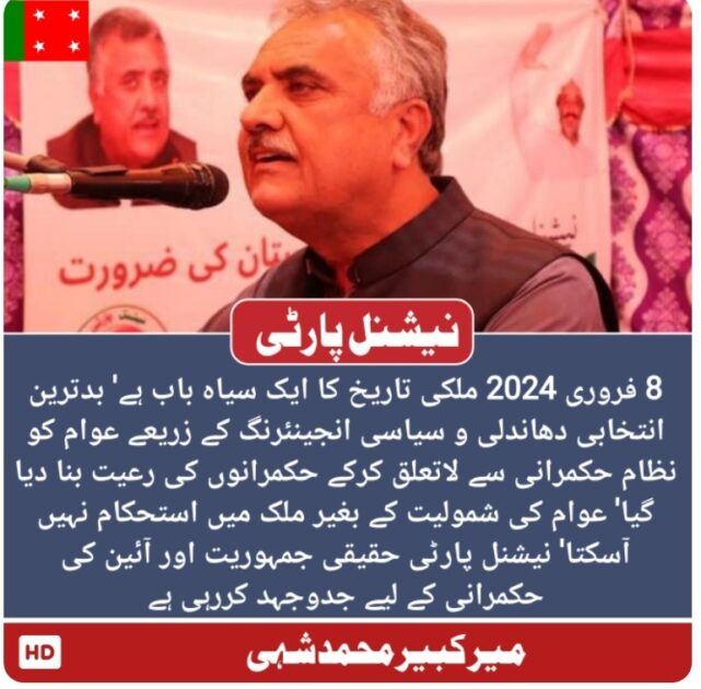 کوئٹہ (رپورٹر) نیشنل پارٹی کے مرکزی سیکرٹری جنرل میر کبیر احمد محمدشہی نے کہا ہے کہ 8 فروری 2024 پاکستان کی سیاسی تاریخ میں ایک اور سیاہ باب کا اضافہ تھا جس میں غیرجمہوری قوتوں نے بدترین انتخابی دھاندلی کے مزید پڑھیں