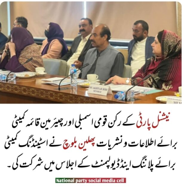 پنجگور (رپورٹر) نیشنل پارٹی کے رکن قومی اسمبلی اور چیئرمین قائمہ کمیٹی برائے اطلاعات و نشریات پھلین بلوچ نے اسٹینڈنگ کمیٹی برائے پلاننگ اینڈ ڈیولپمنٹ کے اجلاس میں شرکت کی۔ اجلاس میں وفاقی وزیر منصوبہ بندی و ترقی احسن اقبال مزید پڑھیں