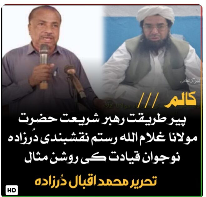 تحریر، محمد اقبال دُرزادہ دُرزادہ قبیلے سے تعلق رکھنے والے واجہ غلام اللہ رستم نقشبندی دُرزادہ ایک نوجوان، قابل اور باصلاحیت شخصیت کے طور پر ابھر کر سامنے آئے ہیں۔ وہ نہ صرف بہادری اور جرات میں نمایاں مقام رکھتے مزید پڑھیں