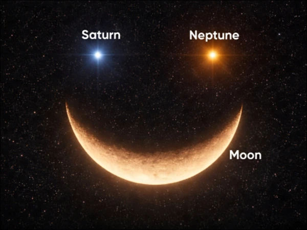 آج رات آسمان ایک دلکش منظر پیش کرنے والا ہے، جہاں چاند، زحل اور نیپچون ایک خاص ترتیب میں قریب نظر آئیں گے اور یوں قدرتی طور پر ایک ’’مسکراتا ہوا چہرہ‘‘ بنتا دکھائی دے گا۔ ماہرینِ فلکیات کے مطابق مزید پڑھیں