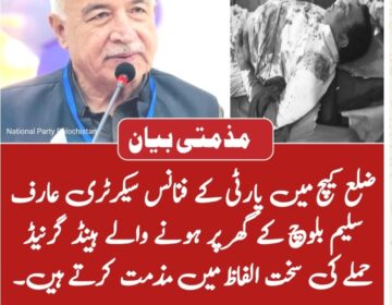 - سینیٹر جان محمد بلیدی کی عارف سلیم کے گھر گرینیڈ حملے کی مذمت