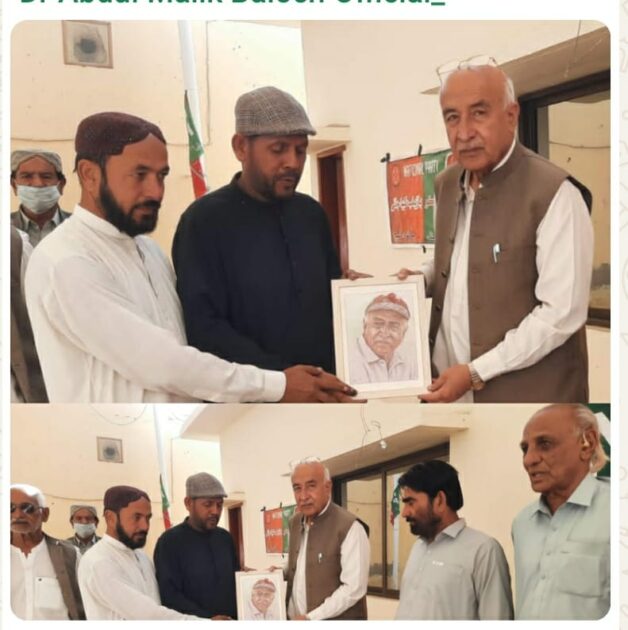 تربت (ر پورٹر) جناب ڈاکٹر عبدلمالک بلوچ سابق وزیراعلی بلوچستان اور رُکن اسمبلی بلوچستان کو ایک خوبصورت اور یادگار لمحے میں معروف مقامی آرٹسٹ شریف قاضی نے اُن کا ہاتھ سے بنائی ہوئی پورٹریٹ بطور تحفہ پیش کیا۔ اس موقع پَنجگُور کے نامور آرٹسٹ پروفیسر حفیظ گوھرجی بھی موجود تھے۔