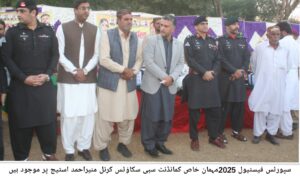 اختتامی تقریب کے موقع پر مہمانِ خصوصی کمانڈنٹ سبی اسکاؤٹس کرنل منیر احمد ودیگر کا کالج پہنچنے پر والہانہ استقبال کیاگہا پھولوں کی پتیاں نچھاور کی بینڈ کے دستے اور سکول کے طلباء نے سلامی دی کمانڈنٹ سبی سکاؤٹس ڈگری کالج میں کبڈی اور فٹبال فائنل کے میبز دیکھے اختتامی تقریب میں نمایاں کارکردگی دکھانے والے کھلاڑیوں میں انعامات اور اسناد تقسیم کیے گۓ۔گراؤڈ میں موجود کھلاڑیوں ودیگر سے کمانڈنٹ سبی سکاؤٹس کرنل منیراحمد نے اپنے خطاب میں کہا کہ ایسے صحت مند سرگرمیوں کے انعقاد سے نہ صرف نوجوانوں کو مثبت مواقع ملتے ہیں بلکہ علاقے میں امن، بھائی چارے اور کھیلوں کے فروغ میں بھی اہم کردار ادا ہوتا ہےفیسٹیول کے کامیاب انعقاد پر عوام، کھلاڑیوں اور انتظامیہ کی کاوشوں کو خوب سراہا گیا اور مستقبل میں بھی اس طرح کی تقریبات کے انعقاد کے عزم کا اظہار کیا گیا اسپورٹس فیسٹیول 2025 میں ضلعی آفیسران سمیت مختلف طبقہ فکر سے تعلق رکھنے والے رہنماؤں سمیت شہریوں کی بڑی تعداد نے شرکت کی
