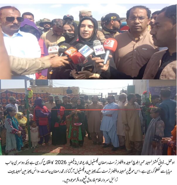 لسبیلہ(بیوروچیف حفیظ دانش)وفاقی وزیر جام کمال خان عالیانی و سیکریٹری پارلیمانی امور میر زرین خان مگسی کی خصوصی ہدایت پراسٹیٹ لائف انشورنس کارپوریشن آف پاکستان کے تعاون سے لسبیلہ ویلفیئر ٹرسٹ رمضان فیسٹیول فاریوتھ اینڈ فیملیز 2026 کی رنگا رنگ تقریب، ڈپٹی کمشنر حمیرا بلوچ کا شاندار افتتاح لسبیلہ ویلفیئر ٹرسٹ فیسٹیول فارتھ انشورنس کارپوریشن آف پاکستان کے تعاون سے رمضان فیسٹیول کا باقاعدہ افتتاح ڈپٹی کمشنر لسبیلہ حمیرا بلوچ نے فیتہ کاٹ کر کیا۔ اس موقع پر شہریوں کی بڑی تعداد موجود تھی جنہوں نے فیسٹیول میں گہری دلچسپی کا اظہار کیاافتتاحی تقریب کے بعد ڈپٹی کمشنر نے مختلف اسٹالز کا تفصیلی معائنہ کیا۔ فیسٹیول میں کھانے پینے کی اشیاء، دستکاری، روایتی ملبوسات، گھریلو مصنوعات اور بچوں کے لیے تفریحی سرگرمیوں کے خصوصی اسٹالز قائم کیے گئے تھے۔ انہوں نے اسٹال ہولڈرز سے گفتگو کرتے ہوئے انتظامات کو سراہا اور کہا کہ ایسے پروگرام مقامی کاروبار کے فروغ اور عوام کو صحت مند تفریح فراہم کرنے میں اہم کردار ادا کرتے ہیں۔تقریب کے دوران منعقدہ محفلِ موسیقی نے شرکاء کو خوب محظوظ کیا۔ علاقائی فنکاروں نے لس دھرتی کے خوبصورت نغمات پیش کیے جس سے فضا خوشگوار ہوگئی اور حاضرین نے بھرپور داد دی۔اس موقع پر وائس چیئرمین ضلع کونسل لسبیلہ سردار غلام فاروق شیخ، ایڈیشنل ڈپٹی کمشنر سراج احمد بلوچ، محمد رمضان جاموٹ سمیت دیگر معززین بھی موجود تھے۔ڈپٹی کمشنر لسبیلہ محترمہ حمیرا بلوچ نے میڈیا سے بات جیت کرتے ہوئے کہا کہ رمضان فیسٹیول کا انعقاد عوام کے لیے خوش آئند ہے اور اس سے نہ صرف مقامی ہنرمندوں کی حوصلہ افزائی ہوگی بلکہ نوجوانوں کو بھی اپنی صلاحیتیں اجاگر کرنے کا موقع ملے گا انہوں نے مزید کہا کہ فیسٹیول میں خواتین نے بھی مختلف اسٹالز لگائیں جو کہ ایک خوش آئند ہے ۔فیسٹیول میں مختلف ثقافتی و سماجی سرگرمیاں منعقد کی جائیں گی، جبکہ سیکیورٹی اور دیگر سہولیات کے لیے خصوصی انتظامات بھی کیے گئے ہیں۔ شہریوں نے اس اقدام کو سراہتے ہوئے امید ظاہر کی کہ آئندہ بھی ایسے مثبت اور تعمیری پروگرام منعقد کیے جاتے رہیں گے۔