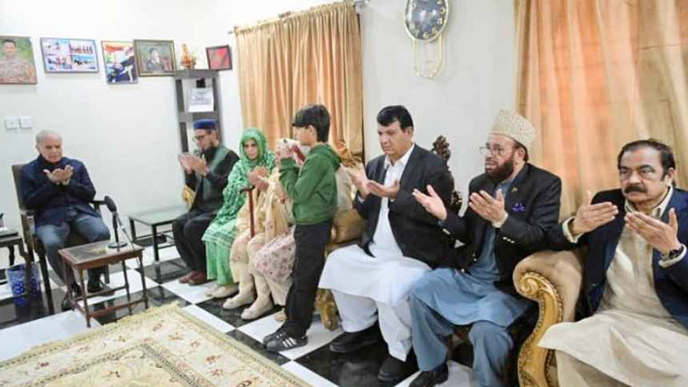 وزیرِ اعظم نے شہید کی والدہ، اہلیہ اور بچوں سمیت لواحقین سے ملاقات کی اور شہید کیلئے دعا کی۔