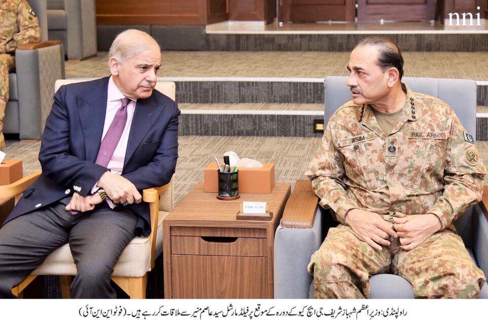 وزیر اعظم شہباز شریف نے جی ایچ کیو کا دورہ کیا، عسکری قیادت نے وزیراعظم کو افغانستان کی صورتحال پر بریفنگ دی۔